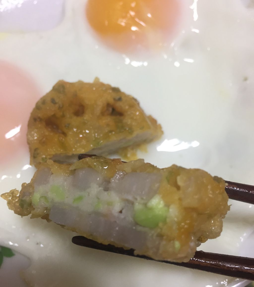 中のれんこんはサクサク、外はちょいモチ食感でとっても美味しいですご飯のおかずにも、お弁当のおかずに入れても良し