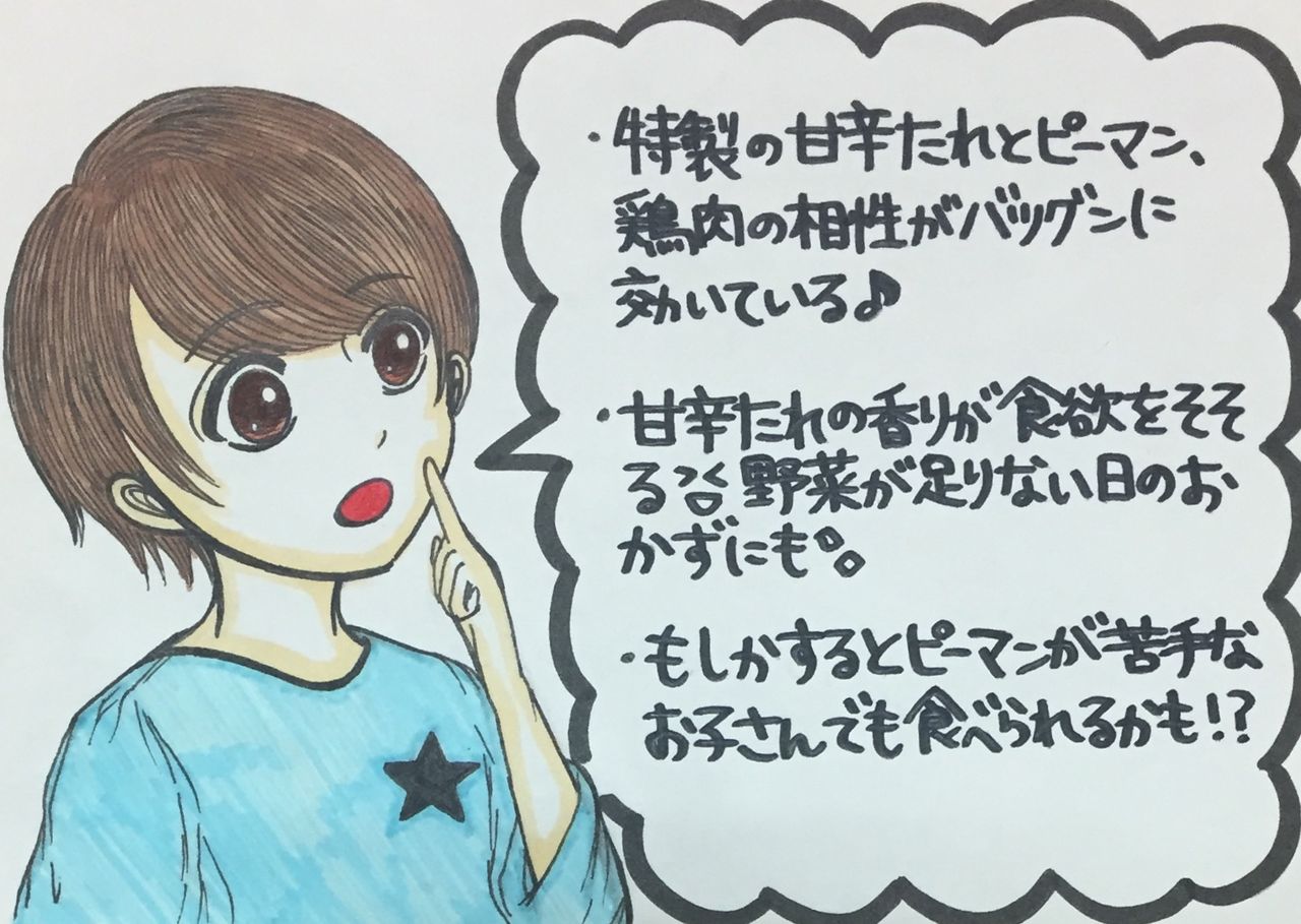 甘辛たれの香りが食欲をそそり、子供でも食べやすい感じでピーマン独特の苦味をあまり感じなかったので、もしかするとピーマンを苦手としているお子さんでも食べられるかも!?と思いました