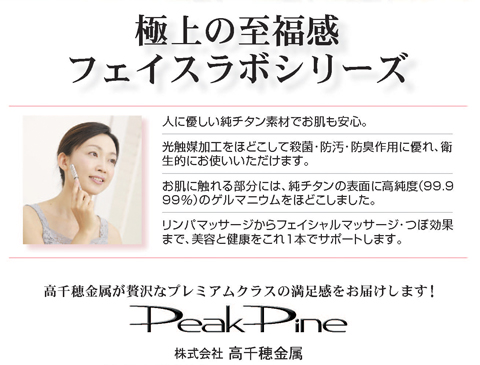 なかでも「よいものを一生懸命につくる」という企業理念を形にしたのが自社ブランドピークパインの美容のプロも絶賛するゲルマニウムフェイスローラーのフェイスラボシリーズです。