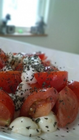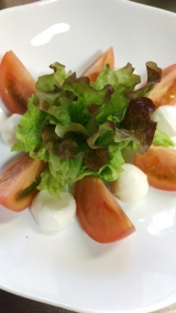 | クリスマスリースサラダ クリスマスリースに見立てサラダに、 チェリーモッツァレラで作った雪だるまを飾りました。 |