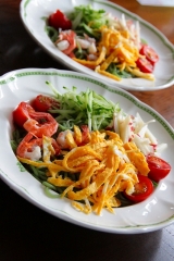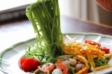 モニプラさんより、高砂食品のめじゃーひやむぎを戴きましたこのひやむぎ、りんごの繊維が入っている変わったひやむぎでした色もきれいな緑色日曜日のお昼ごはんに、早速作ってみました冷蔵庫の中にある材料を使って冷やし中華風にして見ましたひやむぎの麺は、ちょっともっちりした、独特の歯ごたえりんご… 2010/06/15