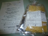 麺{小麦粉、でん粉、食塩、卵白、酒精、乳酸ナトリウム、かんすい、クチナシ色素}