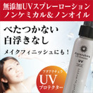 紫外線散乱剤に酸化チタン・酸化亜鉛も使わず、次世代のサンスクリーンといわれる「アクアセリア(酸化セリウムを白金で表面処理)」使用。アクアセリア単体でも酸化チタン・酸化亜鉛と同等以上の紫外線ブロックが十分に可能。アロエベラ液汁、ツバキ花エキス、ミロタヌスフラベリフォリアエキス(復活の木)が紫外線のダメージや乾燥から肌を守ります。