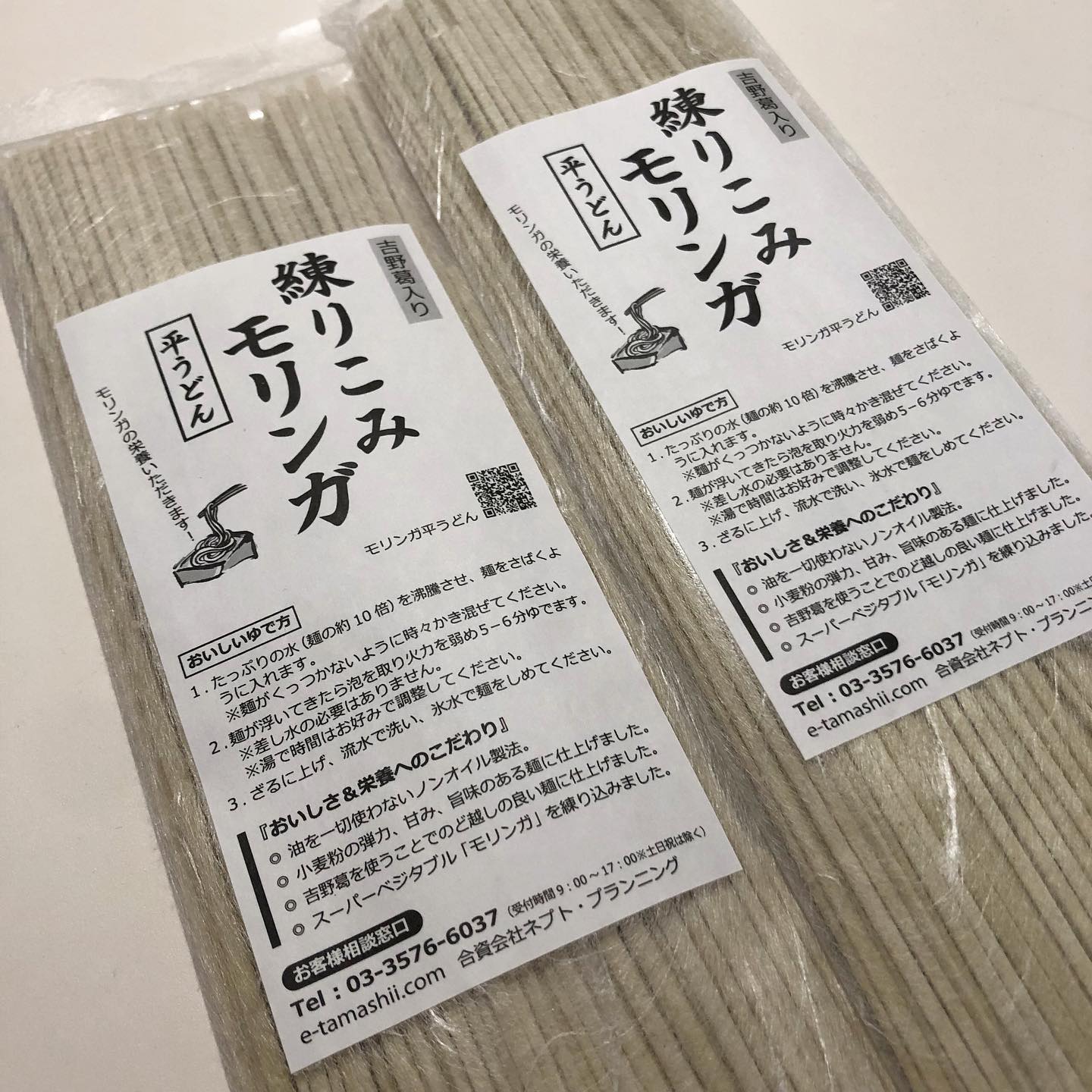 リンガ麺『練りこみモリンガ平うどん(2人前)』は、スーパーベジタブル「モリンガ」と「吉野葛」を練り込んだモチモチなめらかな『モリンガ栄養麺(乾麺)』。つるっとしてコシがある平うどん。「麺の達人」との呼び名も高い(株)三輪山勝製麺の山下勝山さんが製造。「厳選した小麦粉」「天日塩」「ツヤと喉越しの吉野葛」を使用し、有機栽培の「モリンガ粉末」を練り込みました。麺の達人山下さんが最重視するのはまず「素材の良さ」。そして油を使わないこと、吉野葛で光沢を出すこと。「表面は柔らかく、芯にコシがあり、舌触りと香りの良い麺」に出来上がっています。見た目、香り、味、コシ、喉越しのすべてをご堪能ください。麺1人前(1/2袋)でモリンガ1日の標準摂取量の1/2の栄養素が摂取可能。子供から高齢者までおいしくお召し上がり頂けます。ゆで時間2人前約6分。お好みで、温かくまたは冷たくしてお召し上がりください。●モリンガ粉末は、サプリメントの「オーガニック発酵スーパーモリンガ」と同じ有機モリンガ(未発酵)を使用しています。