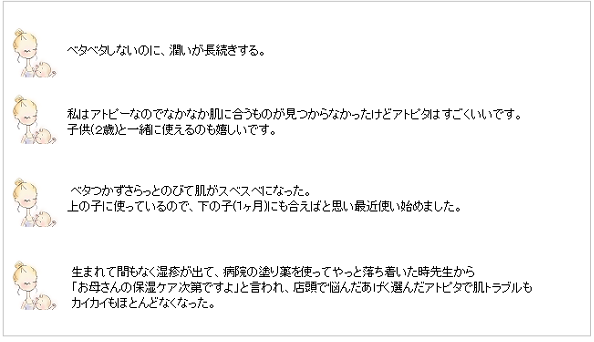 アトピタファンサイトファンサイト応援中丹平製薬株式会社さんのアトピタを使っていますわが家は下の子どもが、乾燥肌で今の時期はほっぺなどがカサカサになってしまうのでお風呂上がりに使っていますつけ心地もサラッとしているので良い感じですべたつかず子供も嫌がりませんダンナも一緒になって使っています使… 2012/01/20