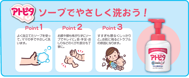 アトピタは、トラブル肌の赤ちゃんのためのスキンケアシリーズです。 これからは、毎日の保湿スキンケアでカサカサ・かゆかゆに悩まないお肌へ。 |