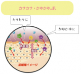 | お肌表面が十分に保湿されていれば、刺激物の 浸入を防いでくれます。 | お肌表面の保湿が足りていないため、角層が隙間だらけ。 水分が逃げやすく、刺激物が侵入しやすい状態です。 |