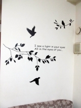 ラブソングウォールステッカー2780円(black)の紹介ですこのお店で1番の人気商品らしいです1枚のシールが貼られた大きいシートと同じ大きさの透明のシールのシートが1枚届きますその透明のシールを黒い鳥さん達の上からキレイに貼りますで、好きなカタチにチョキチョキ壁をキレイに拭いてしっかり貼付けますで… 2011/09/25