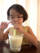 (3)氷と牛乳を入れる