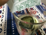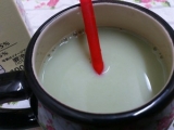 久しぶりに、ちゃちゃわんわんさんに教えてもらった「ご豆腐」を作りました30分くらい火にかけて練らねばならないので、暑い盛りには嫌で作ってなかったのでもいつものとはちょっと違います 青汁入りご豆腐 抹茶プリンみたい?( ̄ー ̄)ニヤリ 普通はゴマだれ等で食べるようだけど、子供たちは甘い… 2015/09/01