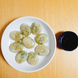 豚肉・鶏肉を使用したジューシーな具をもちもちした皮で包みました。お肉とキャベツ、にらなどの野菜が入った焼餅です。