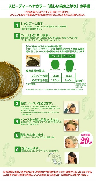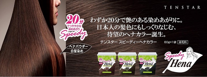 スピーディーヘナカラーは植物染料にHC染料をブレンドした、ハイブリッドタイプの染毛料です。