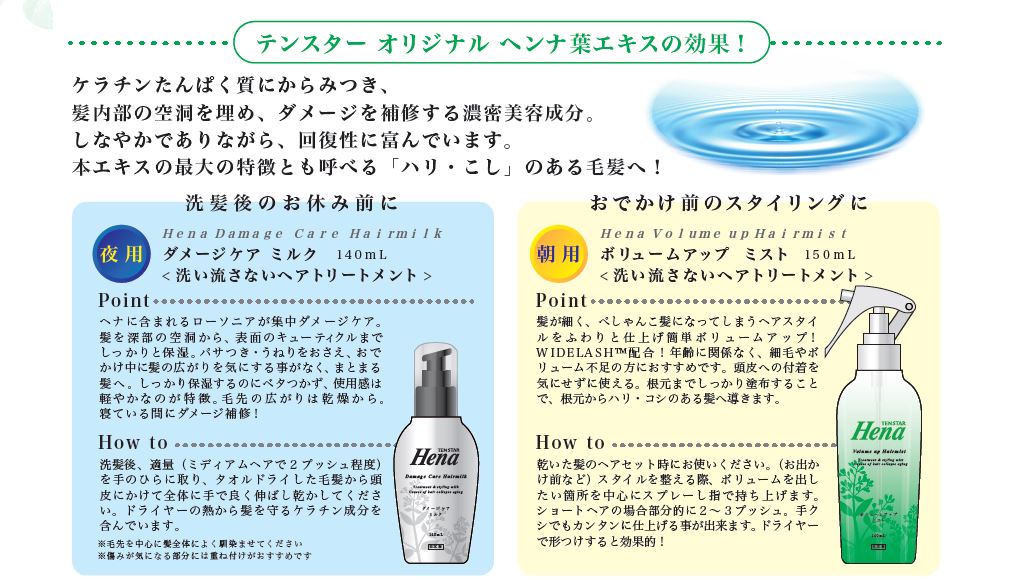 テンスター化粧品の開発・製造をメインに、脱毛ワックス、女性用カミソリなどの美粧雑貨も取り扱うトータルヘアケアソリューションメーカーです。