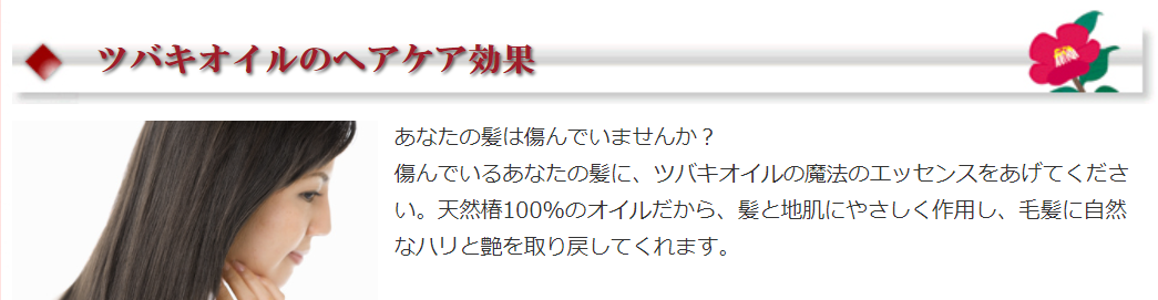 傷んでいるあなたの髪に、ツバキオイルの一滴を。