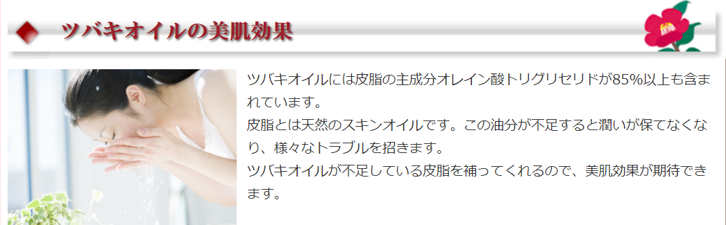 心地よくご使用いただくため、椿油1 0 0 % にこだわり、オイルとは思えないほどサラサラでスッとなじむ使い心地です。