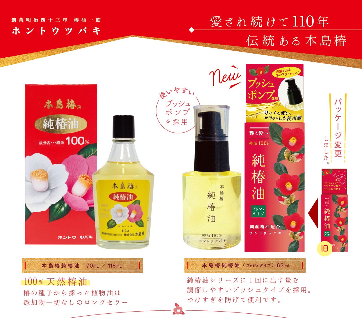 本島椿は皆様に愛され、明治四十三年創業の伝統ある椿油メーカーです。