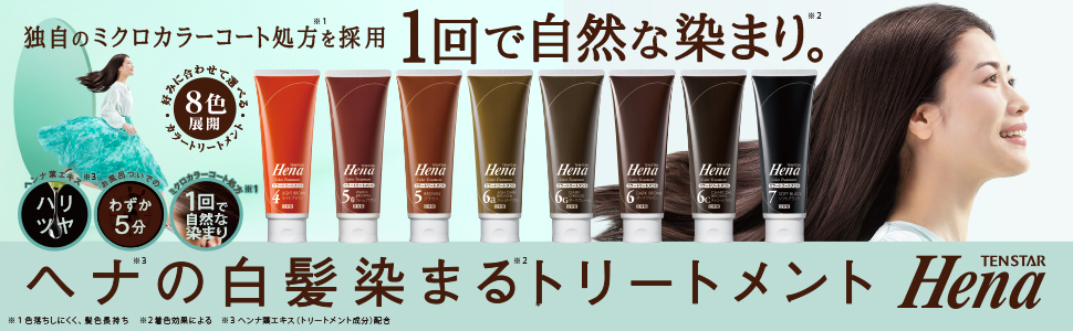 今回は、8色展開でロングラン発売中の白髪染め「テンスターHena カラートリートメント」ブランドから