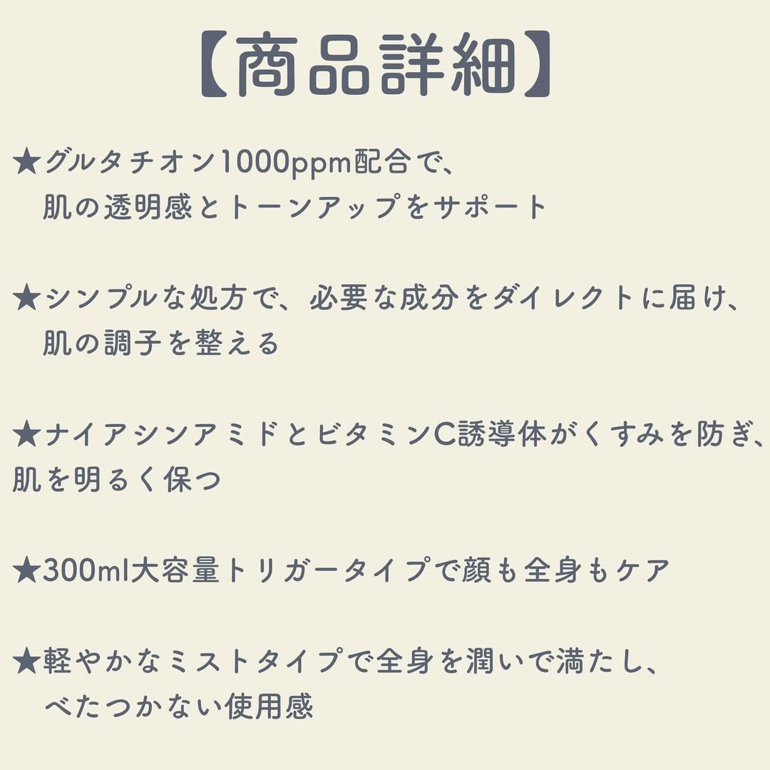 最近のお気に入り化粧水🤍 ホワイトルフィフスの新作、 グルタチオン化粧水を使ってみました🌿 美白成分で知られる、 グルタチオンを高濃度1000ppmも配合。 ナイアシンアミドやビタミンC誘導体も一緒に入っていて、乾燥やくすみが気になる肌にぴったりです。 顔だけじゃなく、 全身に使える大容量300mlのミストタイプなので、 お風呂上がりにベタベタしたものを塗りたくない… でも保湿はしたい!という方におすすめ! 透明感が欲しい方にぜひ試してほしい一本です🕊️ #PR #テンスター #hibinowa_official #ホワイトルフィフス #whitelefifth #ミスト化粧水 #全身潤いケア #大容量化粧水 #グルタチオン化粧水 #ホワイトルトーンアップ #スギ薬局 #先行発売 #monipla #tenstar_fan