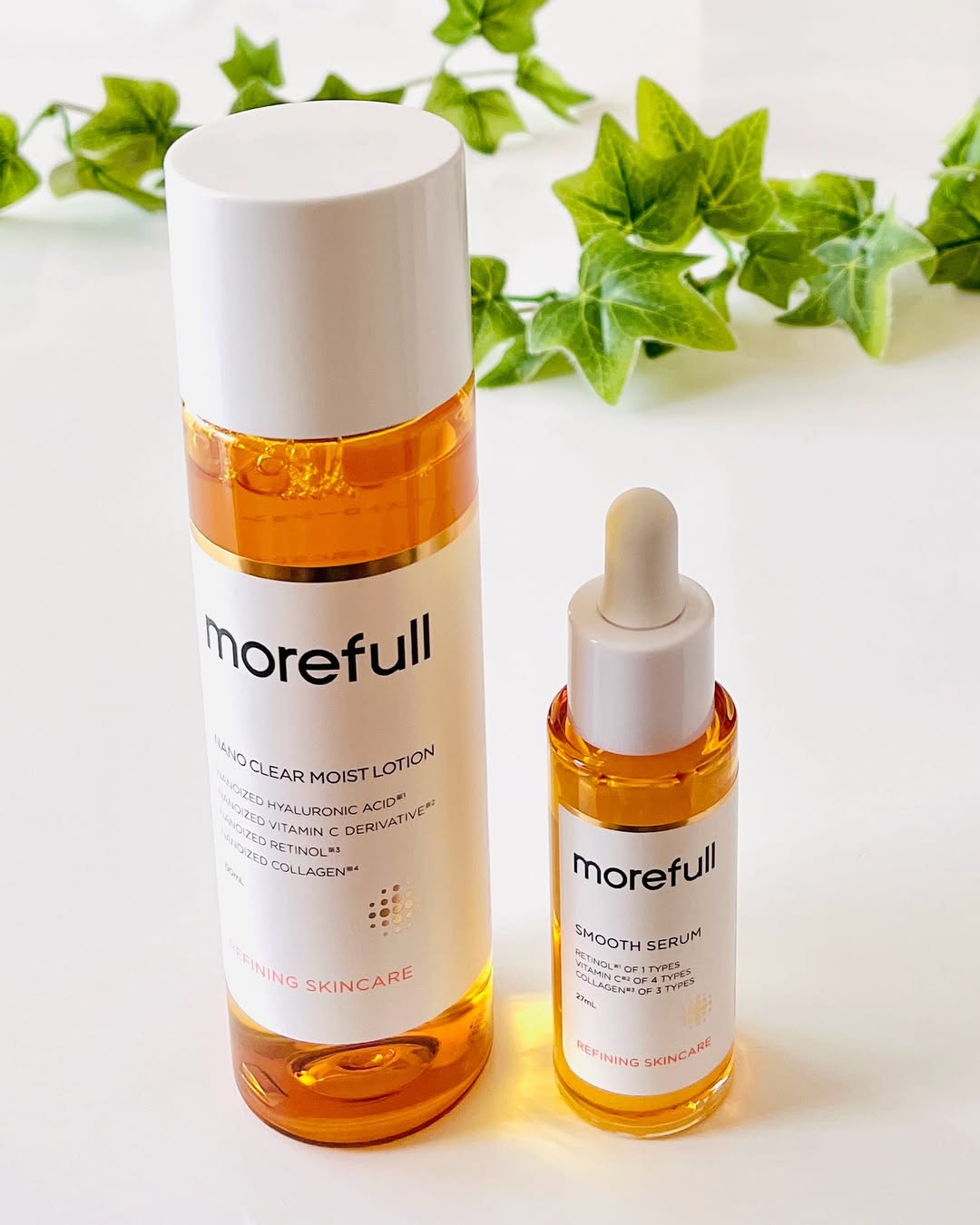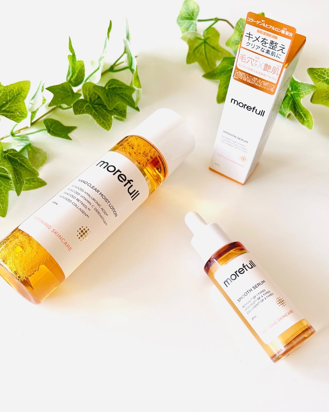 【モアフル スムースセラム&ナノクリアモイストローション】 季節の変わり目や、ふと鏡を見たときに 毛穴の目立ちや、肌のキメの乱れが 年齢とともに気になってきました。 今まではとにかく保湿重視だったけれど、 これからは毛穴ケア※1もスキンケアに きちんと組み込みたい。 そんなタイミングで出会ったのが、 “浸透型※2毛穴ケア”にアプローチする 【モアフル】の2ステップスキンケアです。 洗顔後にまず使うのは「スムースセラム」。 とろっとした導入美容液で、 肌をなめらかに整えてくれるような使い心地。 そのあとに 「ナノクリアモイストローション」を重ねると、 すっとなじんで肌をうるおいで満たしてくれます。 どちらにもビタミンC誘導体※3と レチノール※4を配合。 肌のキメやハリのケア※1に着目した設計は 期待感が高まりますね。 乾燥が気になるわたしの肌でも心地よく使えて、 香りもほとんど気にならないから 朝晩問わず取り入れやすい。 肌のうるおいを守りながら、 毛穴ケア※1もしっかり すこやかな肌を目指したい方に。 スキンケアを見直したいときにもおすすめです。 ※1:保湿による毛穴の目立ちや肌のキメのケア ※2:角質層まで ※3:テトラヘキシルデカン酸アスコルビル(整肌成分) ※4:パルミチン酸レチノール(整肌成分) #PR #テンスター #hibinowa_official #モアフル毛穴ケア #ナノクリアモイストローション #スムースセラム #ハリ肌 #エイジングケア #ナノ保湿 #角質ケア美容液 #ウエルシア薬局 #monipla #tenstar_fan