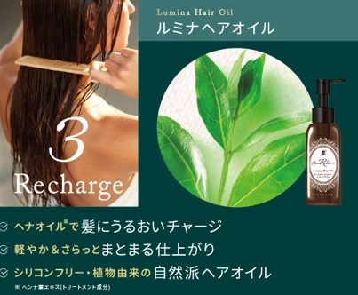 ヘナオイルが髪に艶と潤いをチャージ。