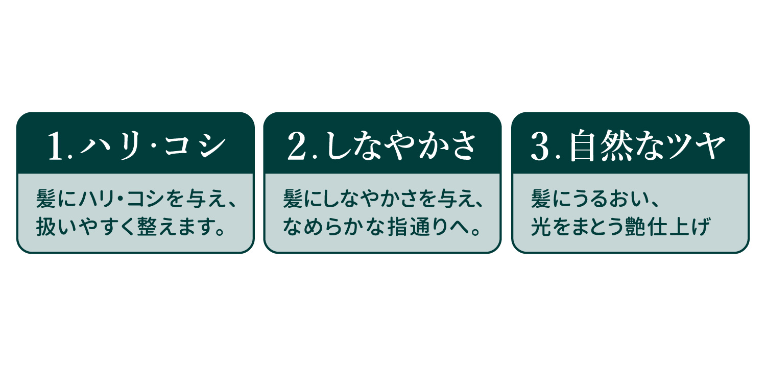 傷みを補修し、しなやかでまとまる髪へ。