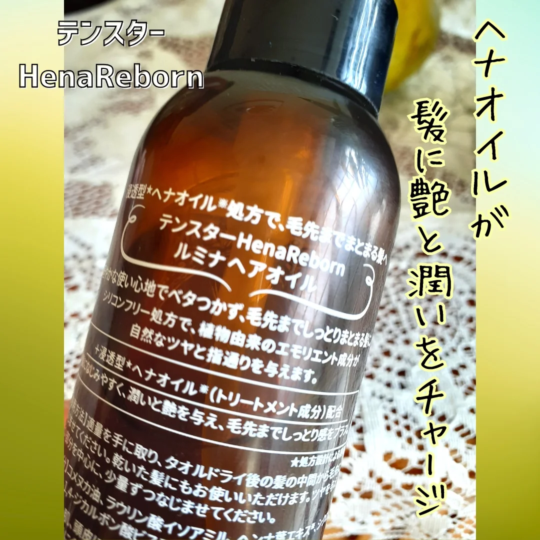 株式会社三宝さまよりご提供いただきました! ★テンスターHenaReborn ルミナヘアオイル シリコンフリー・植物由来の自然派オイルです。 ヘナオイル※で髪に潤いをチャージするというのが テンスターさんならではという感じがします。 といっても、使い心地もシンプルで使いやすいです。 サラッとしたテクスチャーでべたつきにくいのが 細い髪の私にぴったりです。 これで1か月ほど使って、使い方にも慣れてきましたよ。 少量でもよく伸びるので、 つけすぎない程度に使ってちょうどいいです。 ベタつきはしないけど、多すぎると艶々しすぎになります。 軽やかに仕上げるには、軽くワンプッシュがベストでした。 タオルドライした髪になじませて、 ドライヤーで乾かしていますよ。 軽やかにサラサラッとまとまる印象で、 自然なツヤが出てくれるのがうれしいですね。 私の髪にはヘナが合っているのかな。 1か月使って、まだ半分ぐらいなので、 続けていきたいです。 ※ヘンナ葉エキス(トリートメント成分) #PR #テンスター #ヘナリボーン #monipla #tenstar_fan