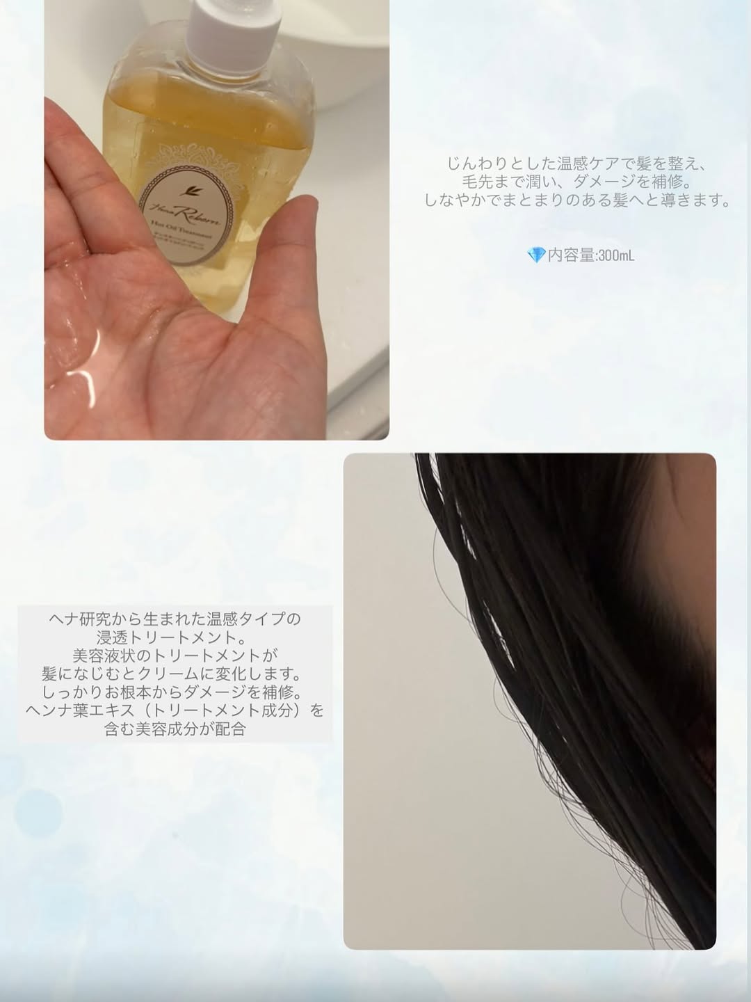 使用すると、じんわりと温かくなる感覚が髪を毛先までしっかりケア✨✨