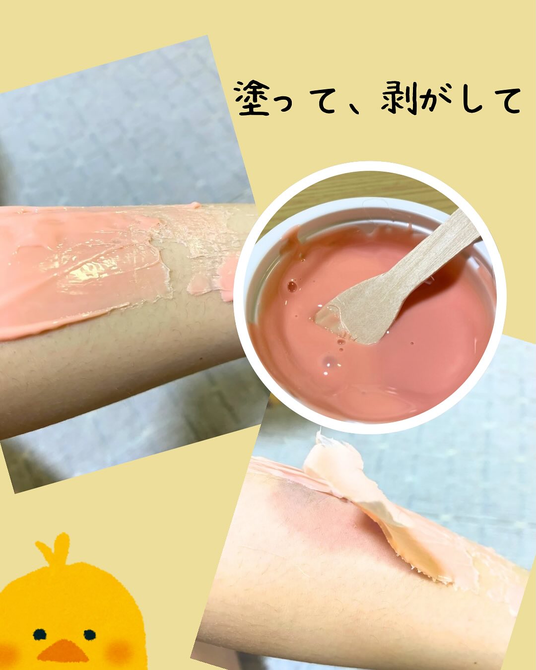 固まったワックスを探してみると、産毛が抜けるチクッとした感覚はありますが、軽々と剥がれて簡単に処理ができた印象でした(優しく剥がすのが重要です!)