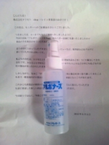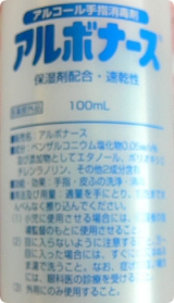 20100831 165836 アルボナース エタノール消毒液 テーマ:モニター当選 モニプラさんで当選して、株式会社テラモト様からこちらを頂きました アルコール手指消毒剤 アルボナース 100ml 特徴: 水洗い不要の速乾性アルコール手指消毒剤 アルコールと殺菌剤(塩化… 2010/08/31