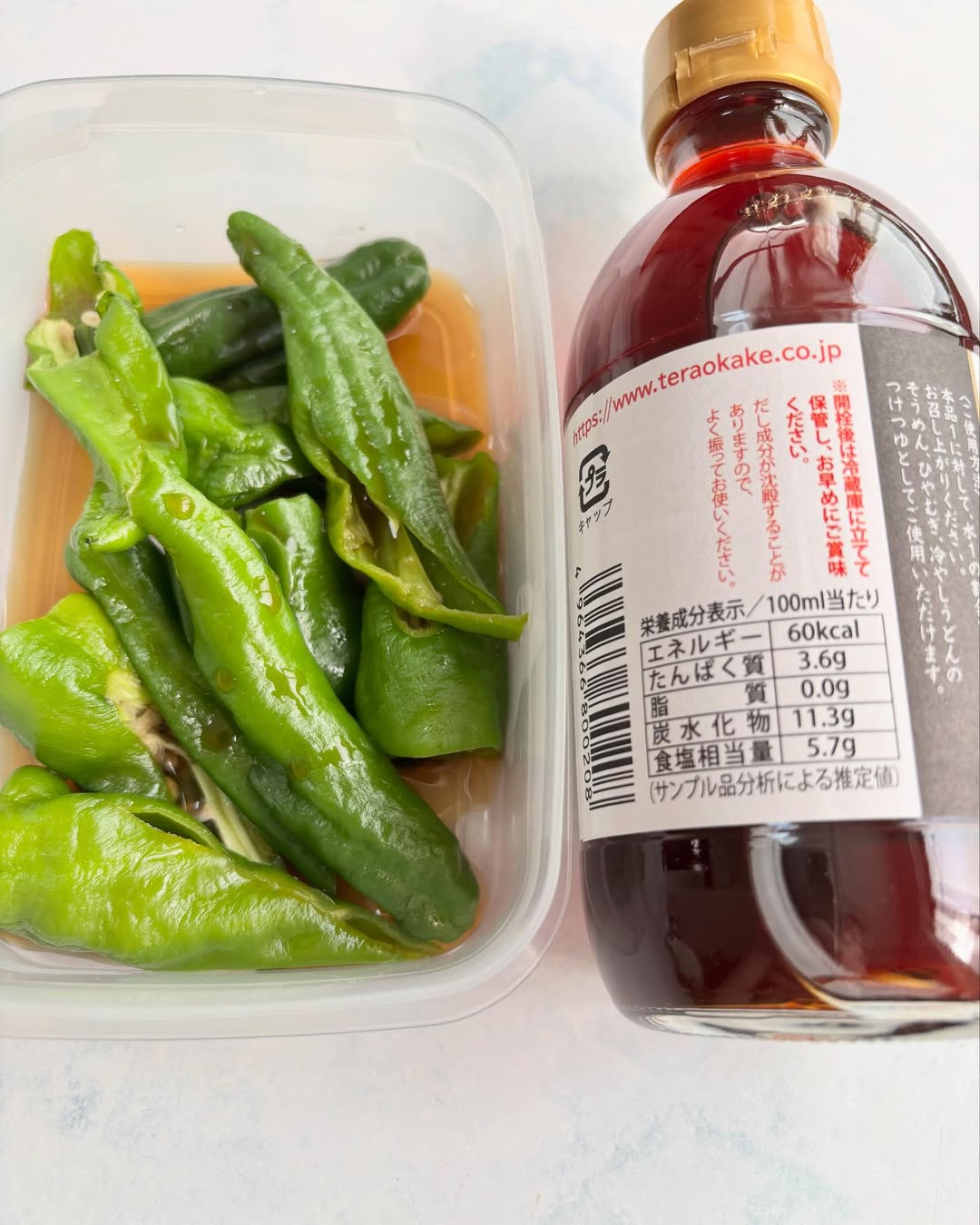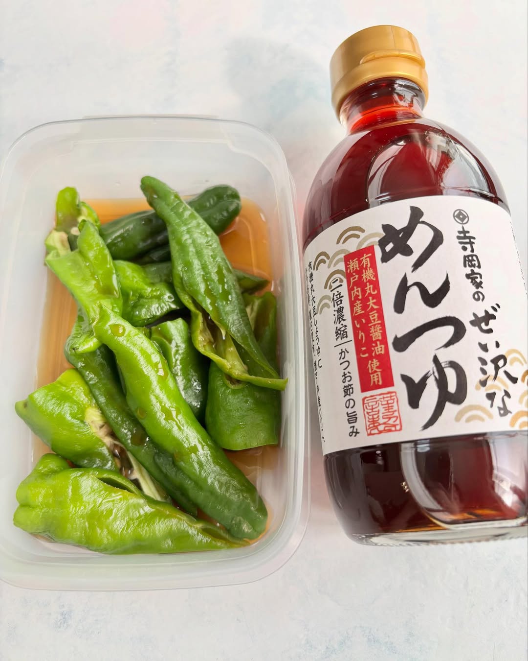 . 今週は作り置きに ✨寺岡家のぜい沢なめんつゆ✨ 使用してみました💡 麺つゆは夏の素麺に欠かせないですが、 お野菜の副菜作りに欠かせないので 普段から常備してます☺️ 実家の甘長唐辛子をレンジでチンして 麺つゆに浸しただけの簡単副菜🫑 「寺岡家のぜいたくなめんつゆ」は 有機丸大豆しょうゆをベースに、かつお節、羅臼昆布、瀬戸内産いりこ、 国産鯖節の4種のだし原料を使用している 贅沢な麺つゆなので普段より旨味たっぷりな副菜になりました🥰 この麺つゆでおそうめん食べたら美味しだろうなぁ〜❤️ おすすめの麺つゆです💡 #PR #寺岡家 #寺岡有機醸造 #寺岡家のぜい沢なめんつゆ #ぜい沢なめんつゆ #めんつゆ #めんつゆレシピ #めんつゆアレンジ #麺つゆ #そうめん #そうめんつゆ #そうめんレシピ #そうめんアレンジ #時短レシピ #時短料理 #時短ごはん #おうちごはん #麺レシピ #monipla #teraokake_fan