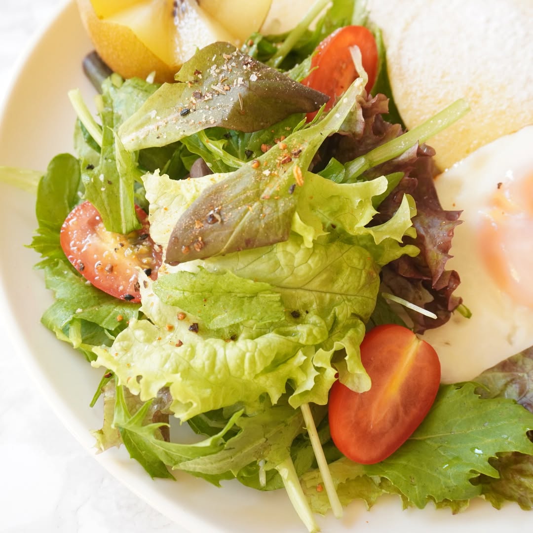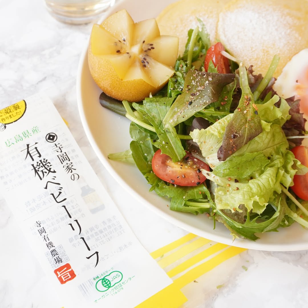 今朝のブレックファースト🥄 米粉のパンケーキに、 @teraoka_soy_sauce 寺岡家の有機ベビーリーフを添えていただきました🥝 5種類以上の若葉をミックスした土耕栽培のベビーリーフは水洗いするだけで盛り付け完了! ベビーリーフは普段オリーブオイルとハーブソルトでいただくんだけど、これはハーブソルトだけでまずは食べてみてほしいなぁ みずみずしい味わいで、しっかり葉の味を感じられるよ! サラダとしてはもちろんだけど、サンドイッチ風に米粉のパンケーキに挟んでいただくのもおススメ☕ #PR #寺岡家 #寺岡有機醸造 #寺岡有機農場 #有機ベビーリーフ #ベビーリーフサラダ #有機野菜 #彩サラダ #おうちサラダ #お手軽サラダ #ヘルシーランチ #ベビーリーフレシピ #旬のサラダ #おうちごはん #簡単レシピ #サラダ生活 #monipla #teraokake_fan