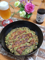 . 先日は牛肉とねぎ(分葱)の炒め物を投稿しましたが、今回もまたまたネギ(ではなく分葱🤣) 実家の家庭菜園の分葱はなんせたっぷりあるので、ぬた(酢味噌あえ)だけでは消費しきれなくてねぎ代わりに使用 前回の炒め物では下の白い部分を主に使用して、上の葉(青い部分)は少しだけだったので、今回は残った葉の部分で 私のレシピの中ではこれが一番大量にねぎ(分葱)を消費できるかも😊 【ねぎ焼き】 φ26cmフライパン1枚分 ◆材料◆ 青ねぎ・・・100g 豚バラ肉・・・1~2枚 卵・・・1個 薄力粉・・・100cc 水・・・100cc 粉かつお・・・大さじ1/2 天かす・・・大さじ2 小エビ(乾燥)・・・大さじ1 塩・・・ひとつまみ ごま油・・・大さじ1/2 醤油・・・適量 ◆作り方◆ ① ねぎは根を切り落とし、小口切りにする ➁ ボウルに薄力粉と水、粉かつお、塩を入れて混ぜ合わせる ➂ 卵とねぎ、天かす、小海老を加えて、全体をさっくりと混ぜる ④ フライパンにごま油を入れて中火で熱し、生地を入れて全体に広げ、豚バラ肉をのせる ➄ 3分ほど焼いて焼き色がついたら、裏返して裏も同様に焼く ⑥ 再度裏返して、(器に盛り)食べやすい大きさに切り、醤油をまわしかけていただく もちろんお皿に移してもいいのですが、鉄のフライパンで焼いたので、そのままフライパンの中でカットしてテーブルに👍 豪快にいただきます 今回もねぎ(分葱)に合わせたのは @teraoka_soy_sauce 様の「寺岡家のお米醤油」 小麦を使わずに大豆とお米で仕込んだグルテンフリーのお醤油です フライパンの上で直接まわしかけたので、じゅっと焦げた醤油の香りがなんとも食欲をそそります😋 #PR #寺岡家 #グルテンフリー #お米醤油 #monipla 2026/04/01