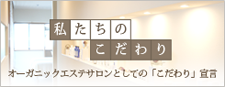 シンプルなお手入れで、お客様の「肌力」を上げるお手伝いを していきます。 お客様の肌を美しく保つことを考え続けた結果、オーガニックコスメにたどり着きましたお肌トラブルで悩み続ける日本人女性の頼れる存在であり続けるサロンでありたい。