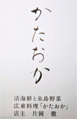 元ホテル日航福岡 鴻臚 片岡料理長が浄水通りに広東料理「かたおか」をオープンしました活海鮮と糸島野菜を今までに培った様々な技法を駆使し季節感を取り入れた新時代の「懐石中華料理」を提供するそうです料理長の長年の夢がいっぱい詰まったお店です 2019/04/20