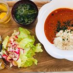 お米三種 せせら なごみ うたう カレー三種 バターチキンカレー チーズカレー トマトカレー ドレッシング二種 今回はチキンカレーを食べてみた🍛 ほろほろチキンとマイルドカレーがとっても美味しかった🥰 #米 #カレー #ドレッシング #北海道 #The北海道ファーム #monipla #thf_fan 2019/05/14