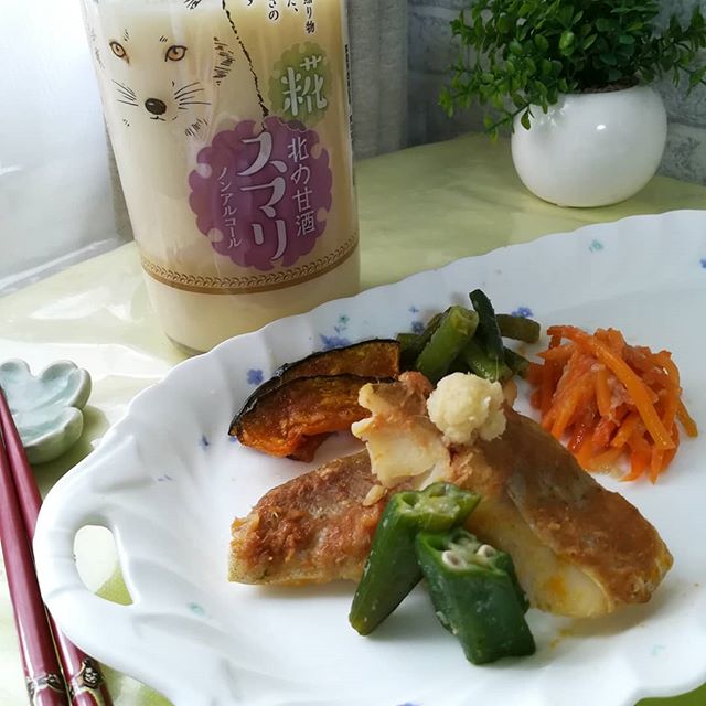 甘酒大好き😙 The北海道ファー厶 北の甘酒「スマリ」 北海道米と米麹だけを使用、お砂糖は一切入ってない贅沢な甘酒です。 甘ーい❣️美味しーい💕 キタキツネ?ボトルデザインがカッチョイイ〜。 . . 冷たいままでももちろん。 レンチンした熱々のを、冷房ガンガンの部屋で飲むのが好き♪甘さ倍増。 生姜もたっぷり入れてー。 . . ◆お土産のベトナムコーヒーにも入れてみた。これが美味っ😍 ベトナムでは練乳入れて飲むので、代わりに甘酒も合う! . . ◆料理にも。味噌+甘酒+生姜+醤油を白身魚と野菜に和えてオーブン焼き。 焦げが美味しい♥ #the北海道ファーム #北の甘酒スマリ #米麹甘酒 #北海道 #甘酒 #飲む点滴 #美容 #monipla #thf_fan #おうちごはん #晩ごはん