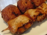 今日8月10日は“8(や)”と“10(とお)”に引っかけて「焼き鳥の日」なのだそうそんな訳で、“つなごう まごころ 東北へ!”キャンペーン中のコンビニ「スリーエフ」でつくねを買って帰りましたっ平原綾香さんの応援メッセージが流れる店内のレジ横、写真が湯気でくもってしまう程に熱々の『こんがりスナック』が… 2011/08/10