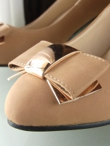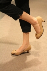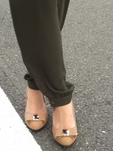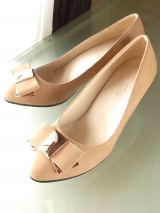 ゴールドモチーフつきリボンが大人上品なパンプスです。