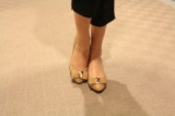ゴールド×リボンにレッドソールと高級感が詰まった大人女子のパンプス。