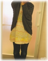 ボタンが無いからお気に入りのブローチやクリップでフロントを合わせて楽しめます。