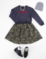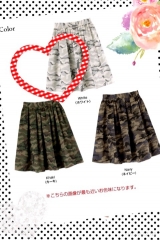 ウエストゴムで楽ちんに可愛く♪迷彩フレアスカート。