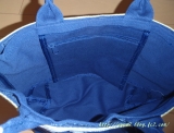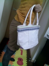 キャンバス地のナチュラル感がたまらない、2パターンのテープが楽しめるハンドバッグ。
