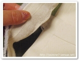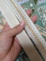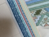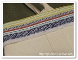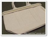 開閉口の縁にチロリアンテープを施しており、テープは刺繍とパールで
