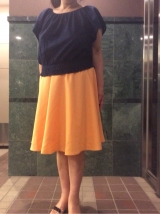 ウエスト部分の幅を広くとることによって、 すっきりした印象になるので、着やせ効果は抜群です。