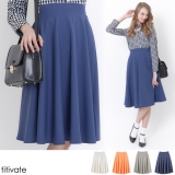 大人気のミディ丈が嬉しい、ウエストゴムフレアスカート。