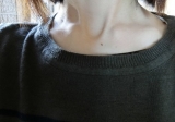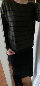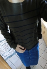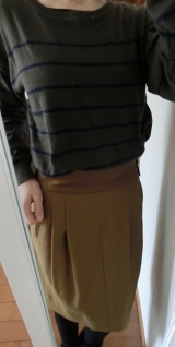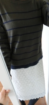 レイヤード風バイカラーの裾が可愛いボーダーニット。