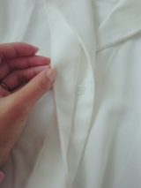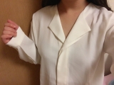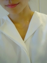 襟なしのフロントはボタンも見えないデザインで、すっきり大人らしい印象を与えます。