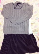 大小組み合わせたケーブル編みなのでデザイン性があり、縦のラインが細身効果に!