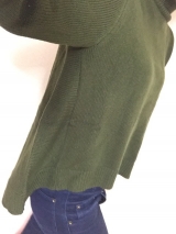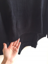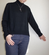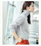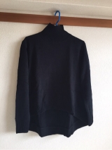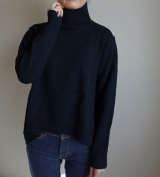 今年らしいタートルネックデザインに、裾は前後差のあるイレギュラーヘムラインで仕上げた、一枚でもサマになるニット。