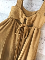 正面はシンプルですが、バックの大きめのリボンでギャップを楽しめるワンピース。 バストの下からはギャザーでボリュームのあるシルエットになっており、 ウエスト位置が高めでスタイルアップを叶えてくれます。 さらっと着心地の良い素材もこれからの季節に嬉しいポイント。 後姿まで抜かりなく大人かわいいアイテムです。